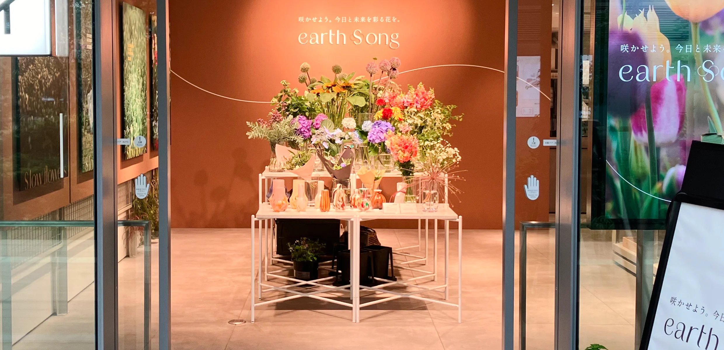 美しくきれいに咲いていても、規格外や売れ残ってしまいやむを得ず廃棄されてしまう花々。花の社会課題に着目し、地域と花の新しい循環を生み出すお店「earth song」をJR高輪ゲートウェイ駅のイベントスペース「マチアイ」に2025年5月13日(火)から6月15日(日)まで出店しました。消費者がサステナブルな取り組みに出会うきっかけとなることを目指し、事業を推進しました。